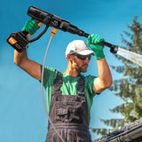 - Its cordless design provides total portability and ease of movement, making it ideal for both home and on-the-go use. From cleaning vehicle exteriors and interiors to washing patios, sidewalks, garden tools, outdoor furniture, or even the walls of your home, this high-pressure washer offers a dependable solution for a wide variety of cleaning needs.